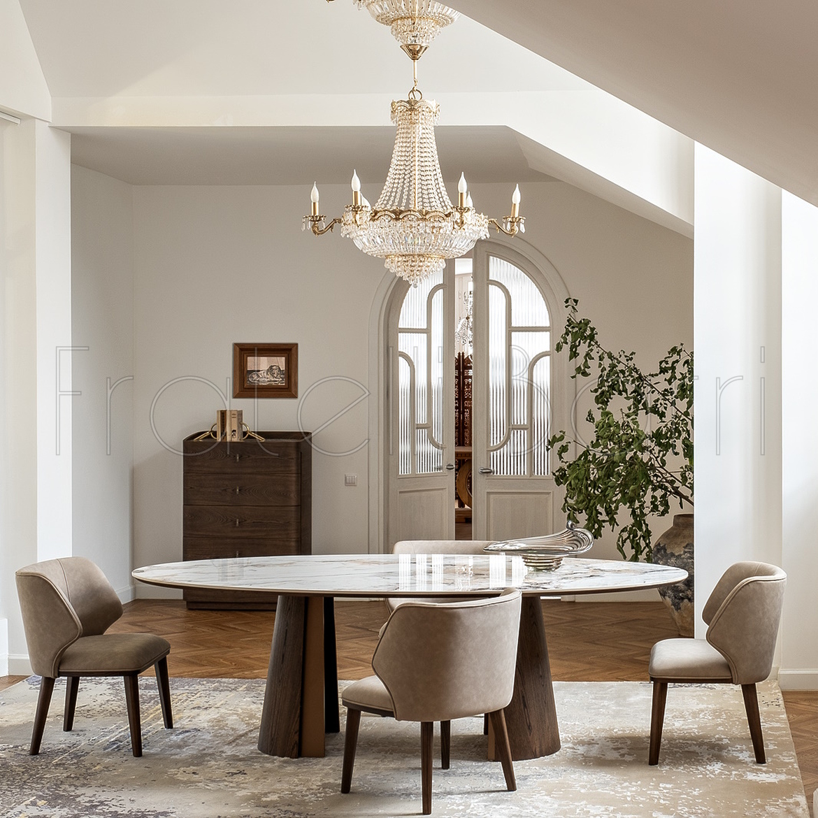 Обеденный стол, отделка Натуральный шпон вяза BT-006, керамика KY-27, YP-106