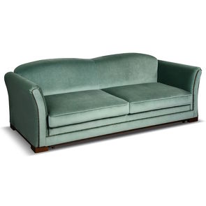 Диван 3-местный, отделка шпон махагона C, ткань серо-голубая рогожка