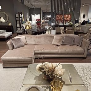 Диван, отделка ткань AB-2026, декоративные детали цвет латунь, ножки хром