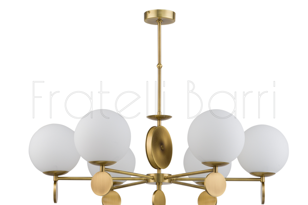 Элегантная люстра выполнена в современном стиле из латуни. Функциональная и изящная модель станет достойным дополнением интерьера.