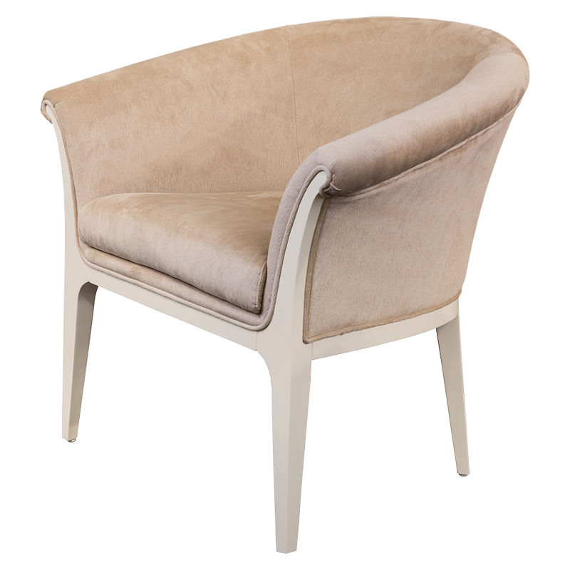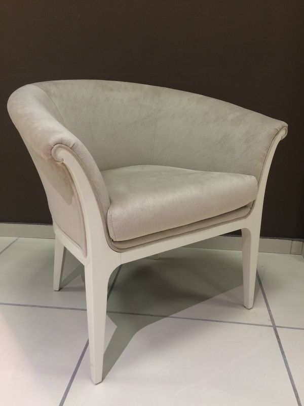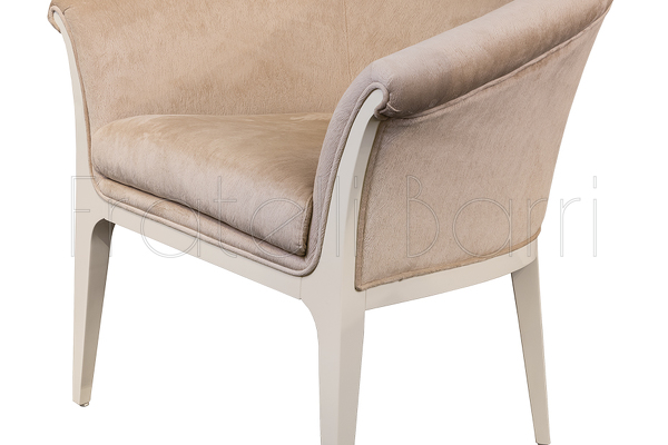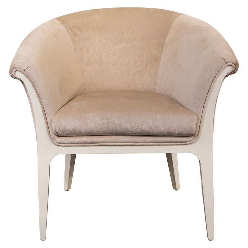 Кресло, отделка белый блестящий лак, ткань бежевый велюр