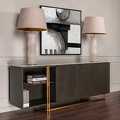 Буфет оснащен 3 дверцами с механизмом открывания soft-closing и открытой полкой.
