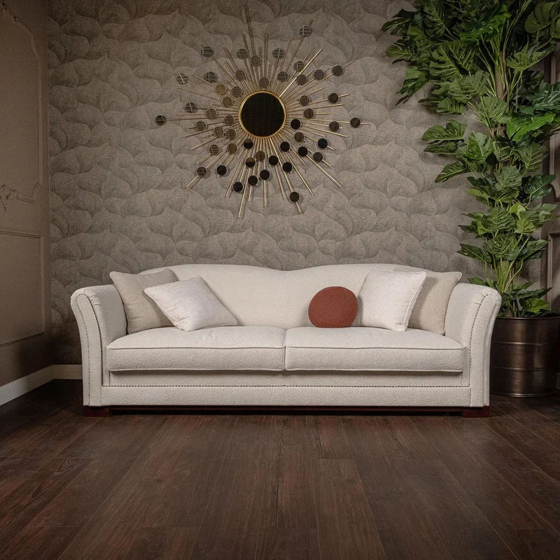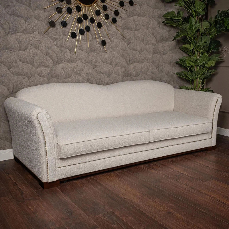 Обивка - ткань букле в светло-бежевом, почти белом тоне.