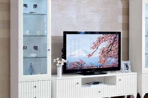 Витрина, отделка перламутровый кремовый лак, серебряное напыление