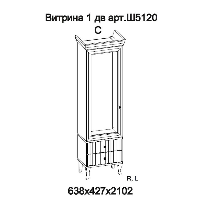 Витрина Buongiorno, оснащена одной дверцей с тремя полками и двумя выдвижными ящиками.