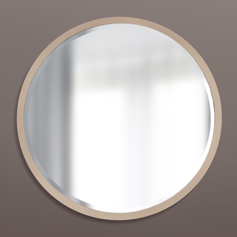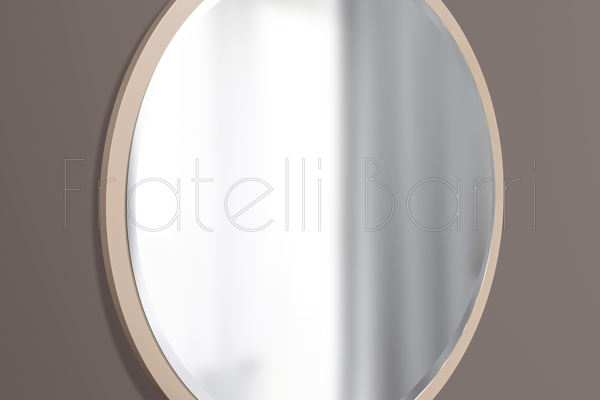 Круглое зеркало от фабрики Frattelli Barri. Мебель обновлённой коллекции «Salvador New» изготавливается из шпонированного ДСП ясень, натурального дерева ясень и лДСП. Отделка мебели выполнена полиуретановыми ЛК материалами.