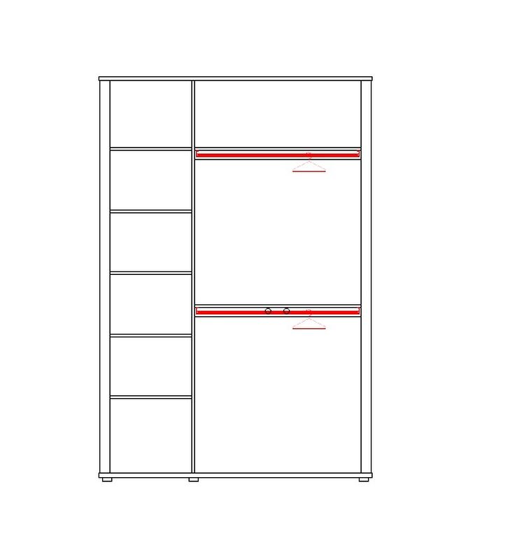 -Правая часть (2 двери) - 2 штанги и верхняя полка.