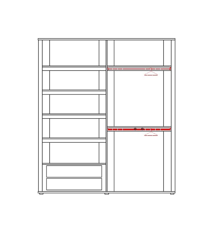 -Правая часть (2 двери) - 2 штанги и верхняя полка.