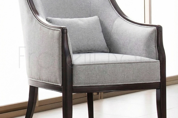 Каркас — натуральный массив дерева, отделка — натуральный шпон махагона, обивка — ткань из ассортимента. В комплект входит одна подушка.