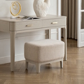 Пуфик выполнен из высококачественного МДФ, ножки - массив дерева, ткань - шенилл в бело-серых тонах.
