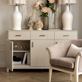 Буфет оснащен тремя дверцами и тремя выдвижными ящиками, что позволяет организовать удобное хранение абсолютно любых вещей, при этом не создавая визуального шума. Ящики cо скрытыми направляющими и системой плавного закрывания "soft close". Дно ящиков покрыто бархатной тканью.