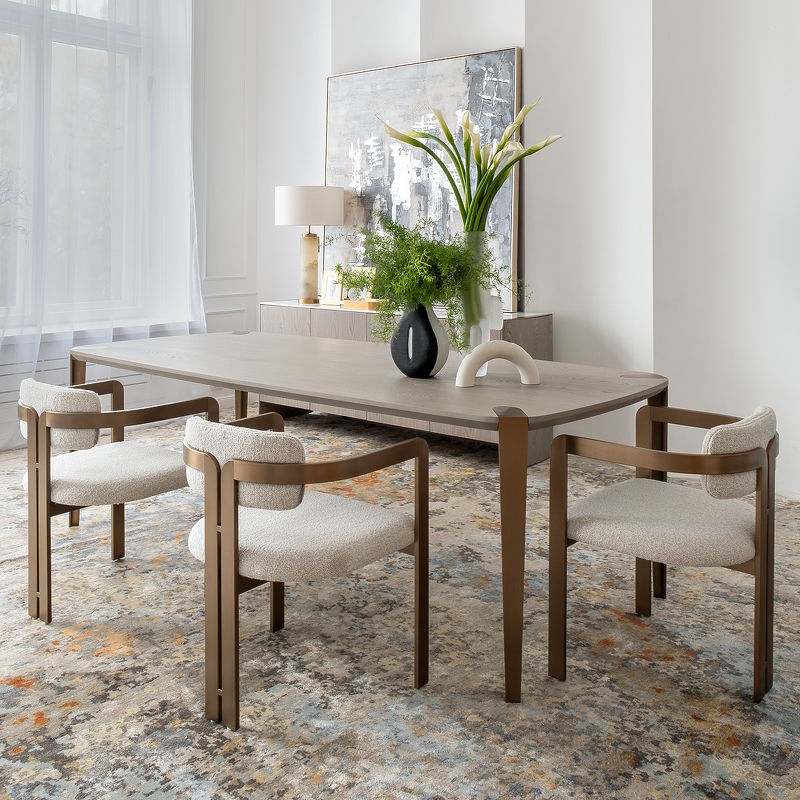 Акцентом стола являются "врезанные" в столешницу металлические ноги. Это придает казалось бы простому столу очень интересные детали, привлекающие внимание.
