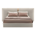Кровать изготовлена из МДФ высокой плотности. Обита тканью типа шенилл в светло-бежевых тонах. Изголовье и база украшены мелкой драпировкой. Вставка на изголовья - нержавеющая сталь в цвете латунь (без рисунка).