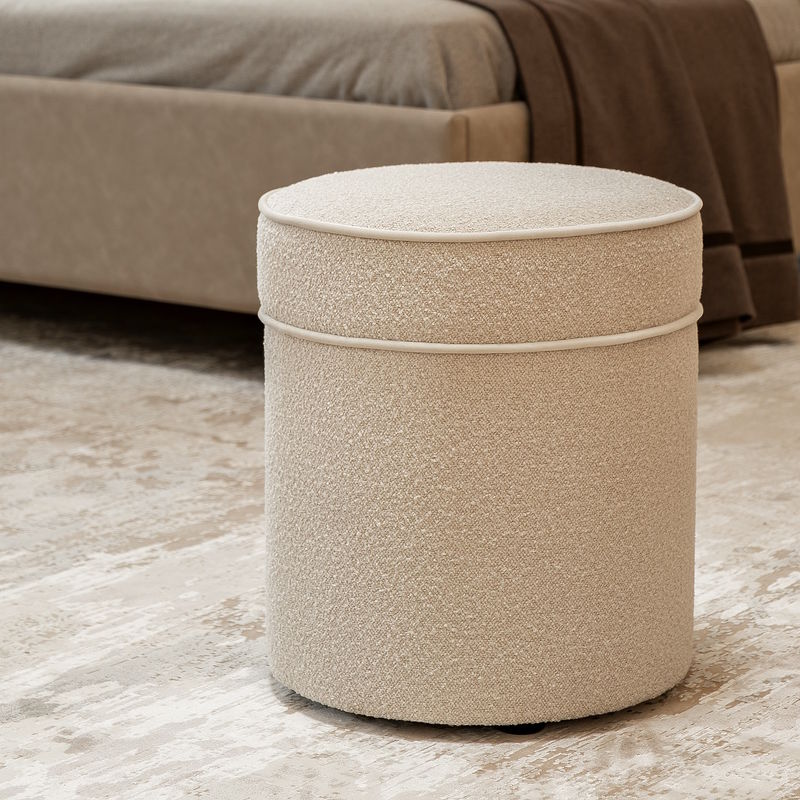 Пуф, отделка матовый бежевый лак, ткань Jeanie-02