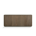 Буфет оснащен четырьмя дверцами, для комфортного хранения. Выполнен в отделке шпоном американского ореха, цоколь и детали - нержавеющая сталь.
