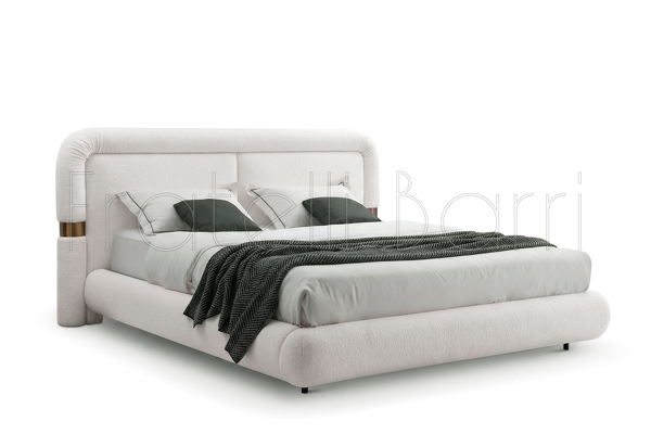 Двуспальная кровать с мягким изголовьем от итальянского бренда Fratelli Barri. Изголовье дополнено деталями в цвете бронза.