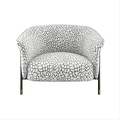 Кресло в ткани из ассортимента фабрики, дополнено утонченными черными металлическими ножками.
