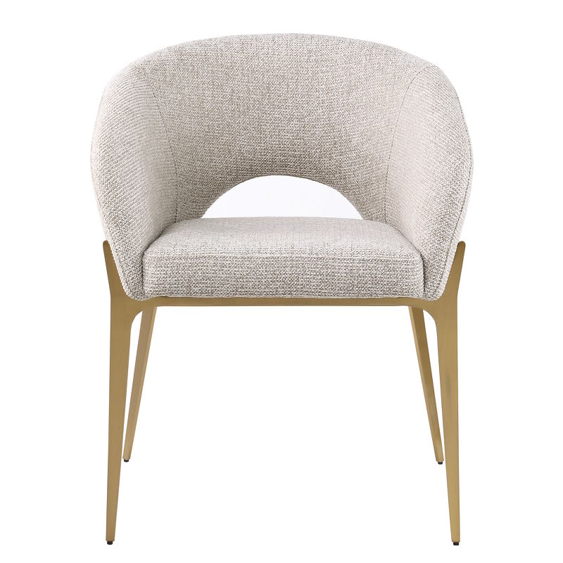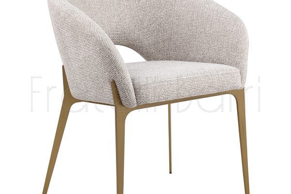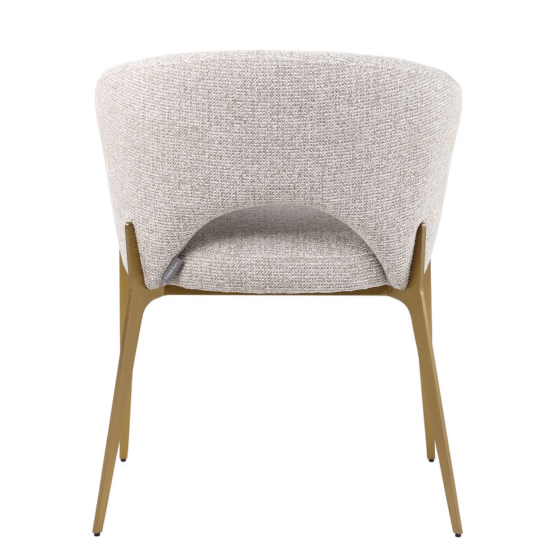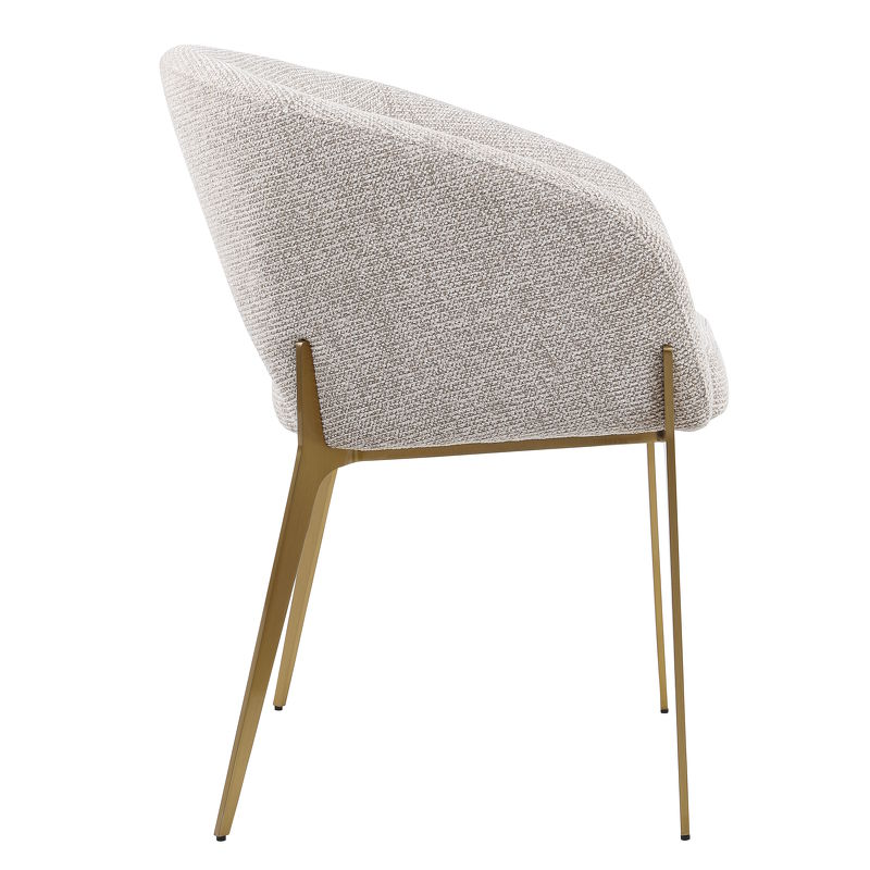 Стул на металлокаркасе выполнен в обивке тканью букле, стальные ножки в цвете матовое золото, нанесены методом вакуумного напыления.