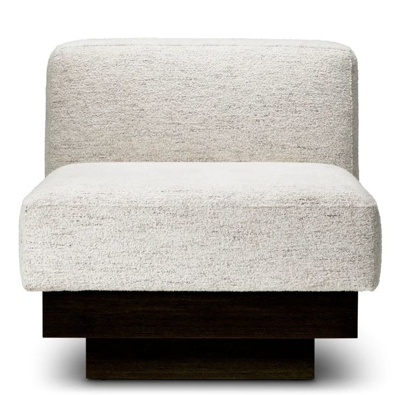 Кресло Bastion от нидерландской фабрики Eichholtz выполнено в отделке тканью цвета морской ракушки сливочно-белого цвета на черном основании в шпоне.