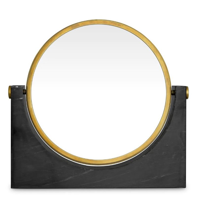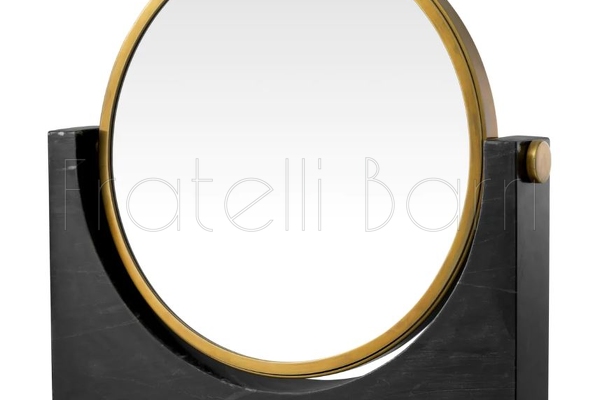 Круглое настольное зеркало Vivaldi на черном мраморном основании. Зеркало двухстороннее, с одной стороны обычное зеркало, с другой стороны увеличительное.