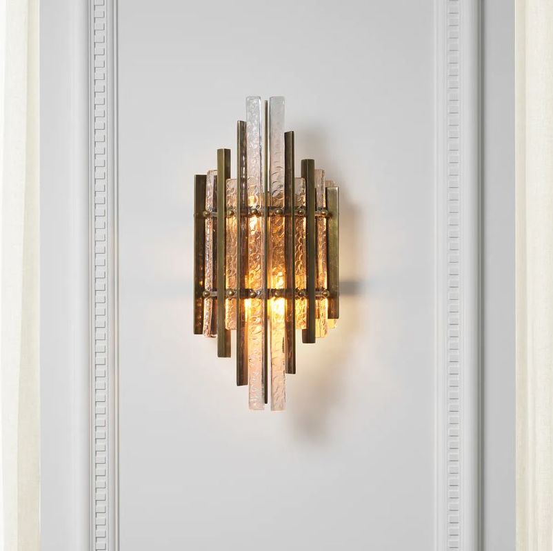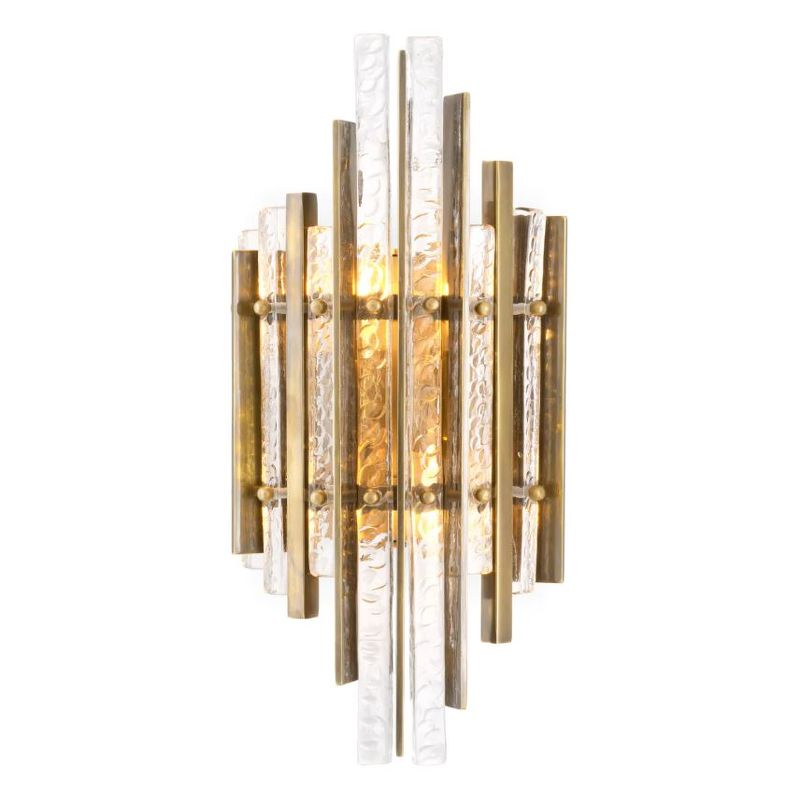 Бра Leonora от нидерландской фабрики Eichholtz - стильный и необычный, украсит любое жилое помещение. Выполнен из фактурного стекла ручной работы, дополнен деталями в состаренной латунной отделке.