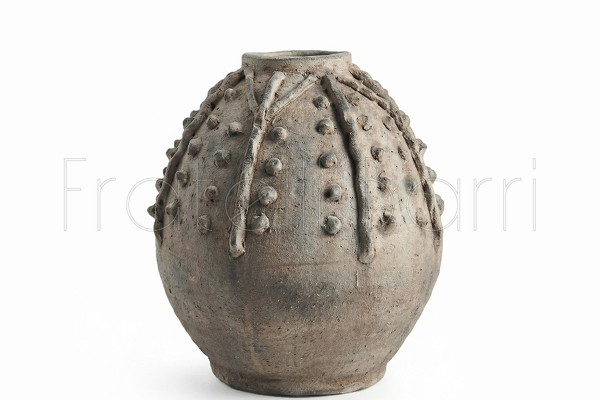 Лаконичная керамическая ваза, с выступающими декоративными деталями, отлично впишется в современный интерьер.