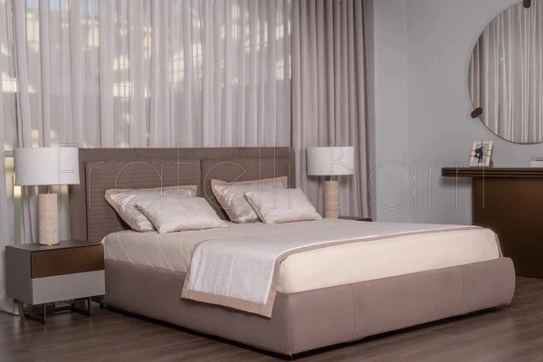 Основание, изголовье и декоративная часть изголовья с рисунком "соты". Ножки в черном матовом цвете.