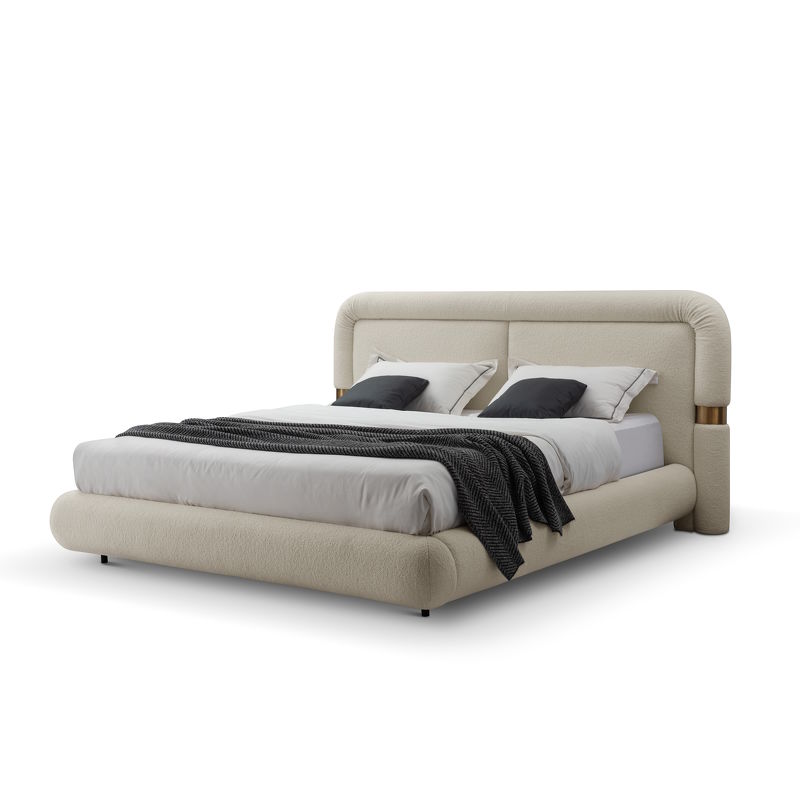 Двуспальная кровать с мягким изголовьем от итальянского бренда Fratelli Barri. Изголовье дополнено деталями в цвете бронза.