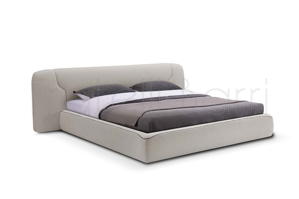 Двуспальная кровать бренда Fratelli Barri с мягким изголовьем. Выполнена в отделке тканью, с окантовкой из искусственной кожи, ножки черные.
