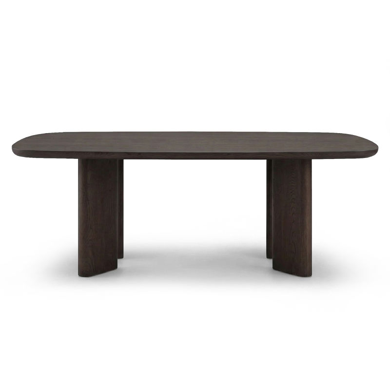 Столешница и ножки выполнены в отделке матовым шпоном вяза, что обеспечивает визуальное единство конструкции. Натуральная текстура дерева сохраняет выразительность, а матовая поверхность придает материалу благородную сдержанность.