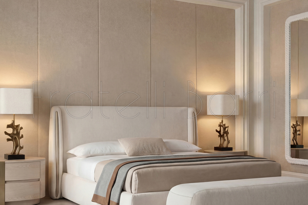 Двуспальная кровать с мягким изголовьем с "ушками" от бренда Fratelli Barri в современном стиле.