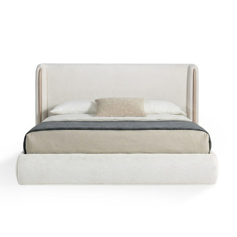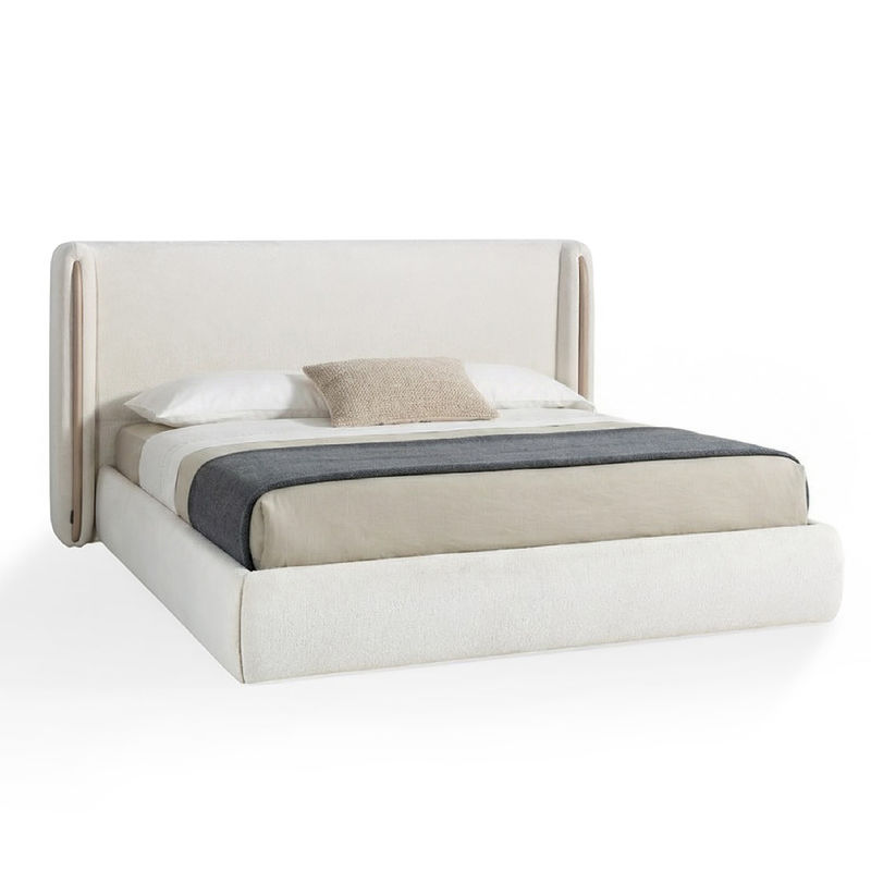 Кровать выполнена в обивке тканью, с декоративными деталями в натуральном шпоне дуба. Благодаря лаконичному дизайну кровать можно стилизовать в скандинавский стиль, современный или минимализм.