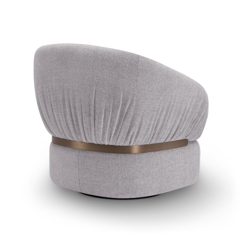 Кресло обито приятной тканью из ассортимента фабрики, акцентная деталь из нержавеющей стали в цвете матовая латунь. Каркас кресла деревянный, наполнитель пенополиуретан.