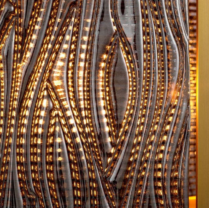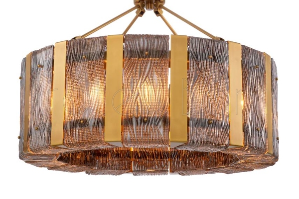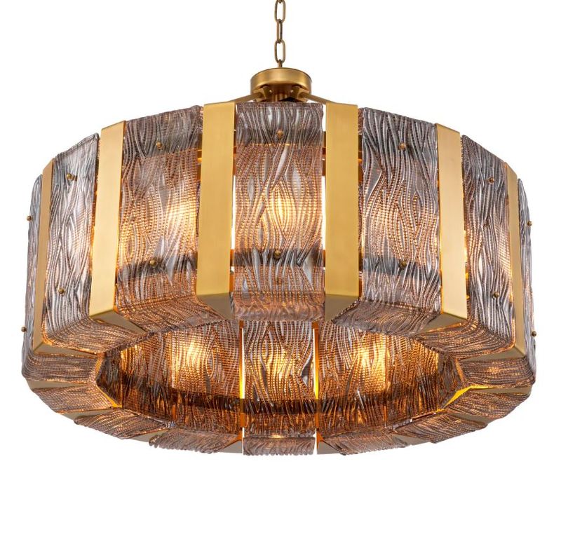 Добавьте игры света в ваш интерьер с люстрой Elysian от Eichholtz. Дымчатое стекло с узором отлично сочетается с латунными деталями.