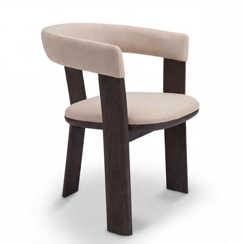 Обивка сиденья и спинки в бежевом цвете добавляет нежности и контрастирует с темным каркасом в матовом шпоне вяза, создавая гармоничный внешний вид. Наполнитель - комфортный пенополиуретан.