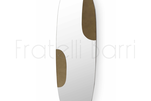 Зеркало от бренда Frattelli Barri - интересное решение для оформления помещений в современном стиле. Декоративные вставки выполнены в отделке лаком цвета состаренная латунь.