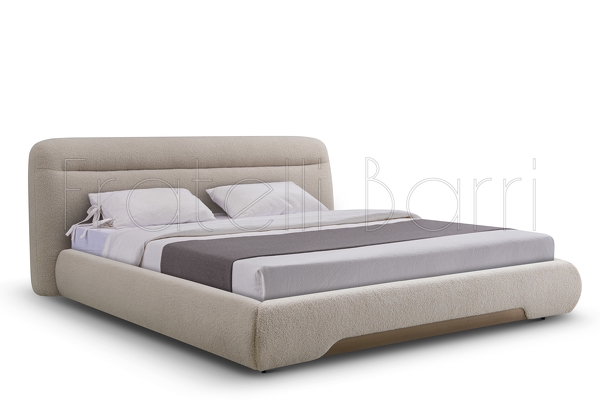 Кровать выполнена в отделке эко-кожей, ножки металл в матовом лаке черного цвета, детали в цвете латунь.