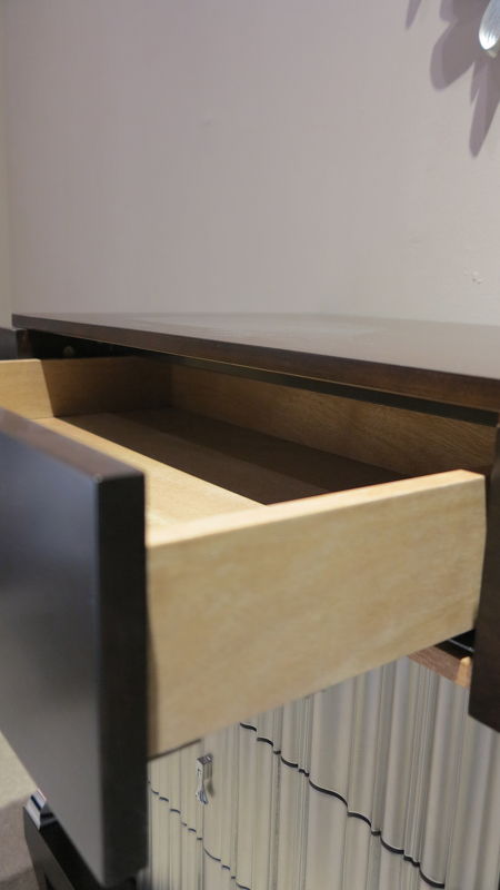 Каркас — массив дерева и высококачественная МДФ высокой плотности, отделка — натуральный шпон вишни. Все выдвижные ящики снабжены направляющими.