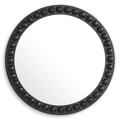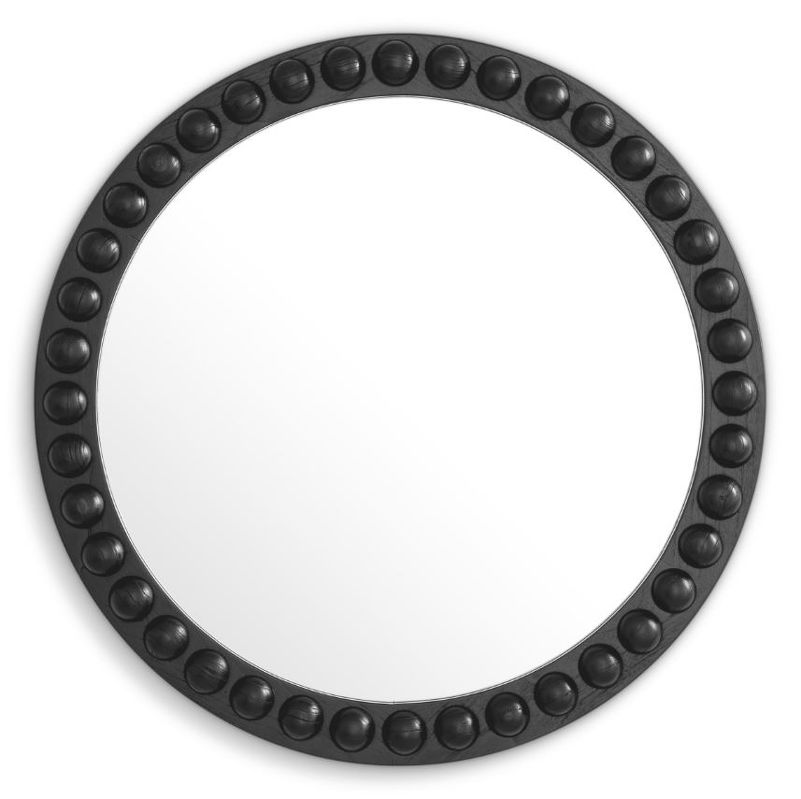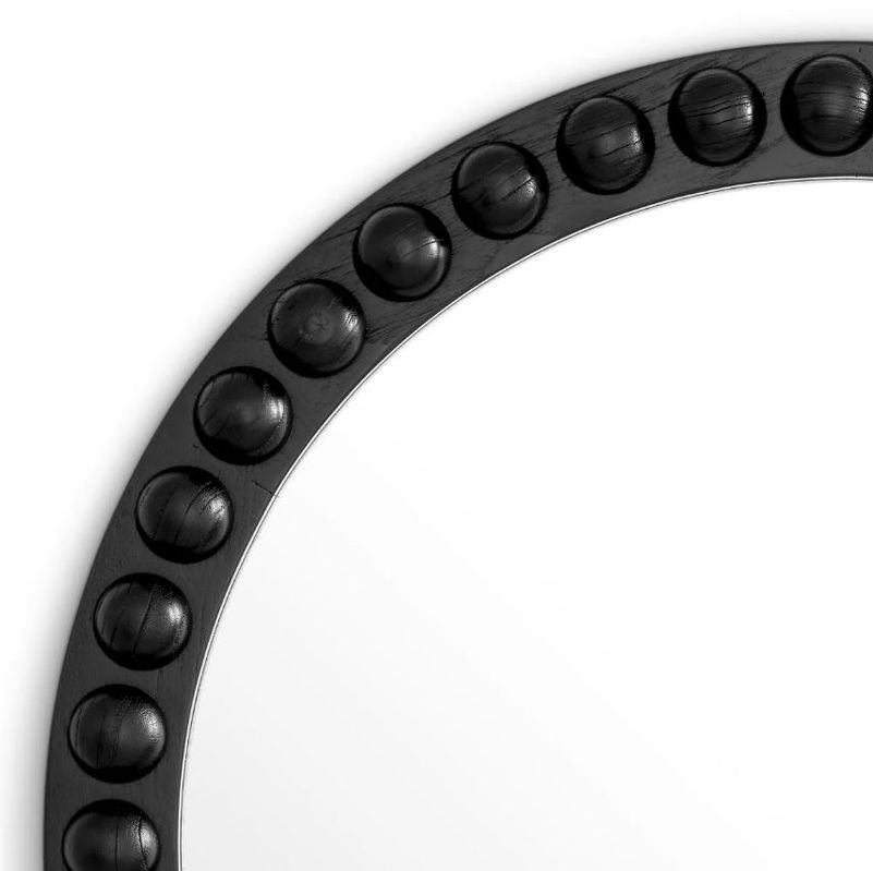 Круглое зеркало Kenton от Eichholtz. Выполнено в лаконичной черной отделке с трендовыми декоративными полусферами по периметру, что придает зеркалу более интересный вид.