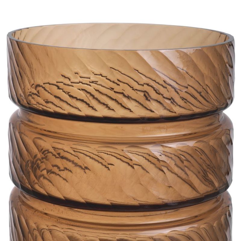 Эта изысканная стеклянная ваза изготовлена вручную, а также, имеет тонкий узор, вырезанный вручную, что придает ей уникальности и ценности. Медный цвет мягко создает спокойную, теплую атмосферу, дополняя ваше жилое пространство элегантностью и сдержанной роскошью, и станет идеальным центральным элементом для обеденного стола или консоли.