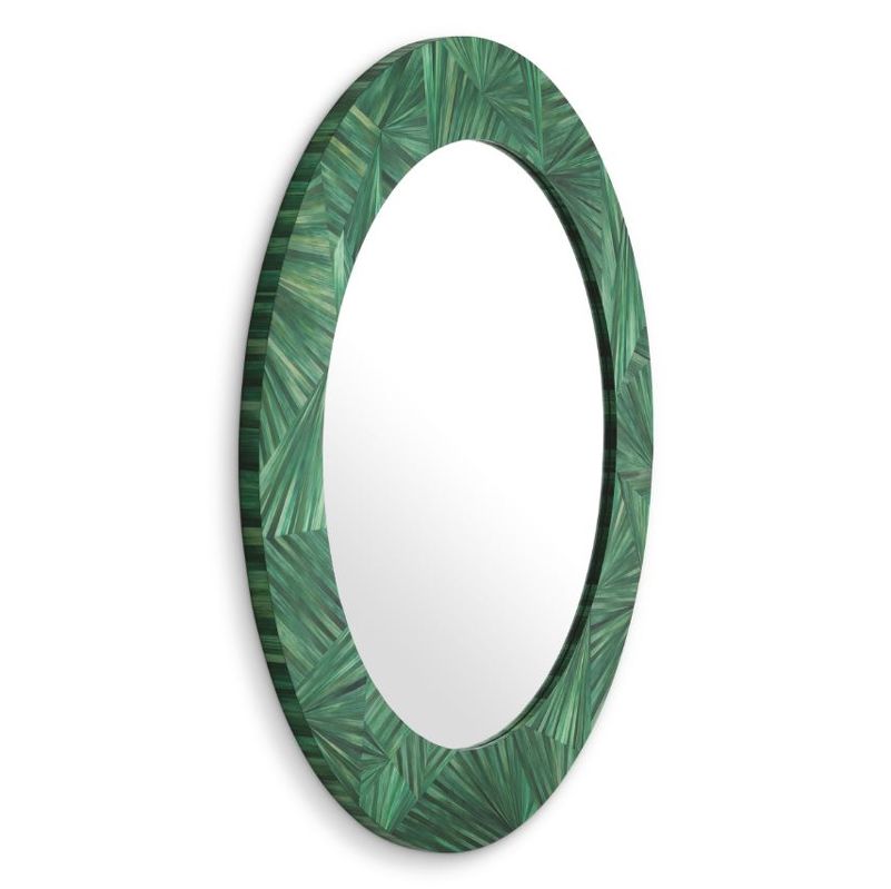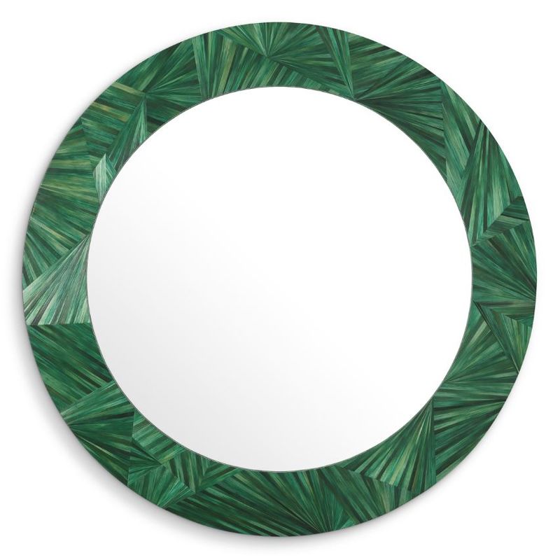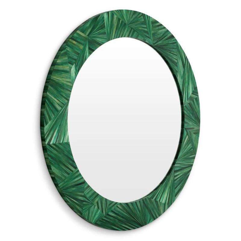 Это круглое зеркало прекрасно впишется в изысканные интерьеры, добавляя растительный шарм любому месту, где оно будет выставлено, благодаря своей природной зеленой отделке.