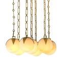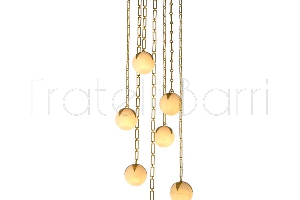 Композиция строится на ритмичном танце алебастровых сфер. Подобно планетам, удерживаемым невидимой гравитацией, они парят в воздухе, закрепленные на тонких удлиненных цепях. Круглый латунный карниз служит для них Солнцем — центром этой миниатюрной галактики.