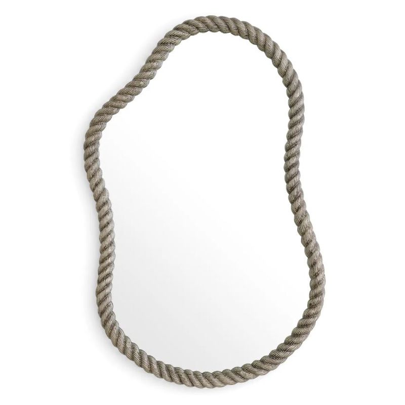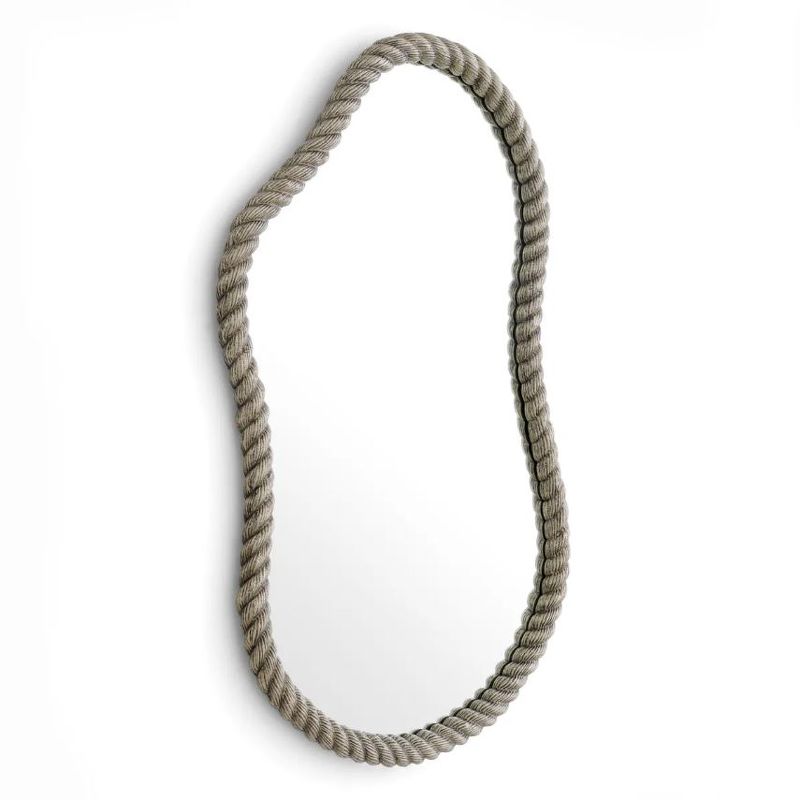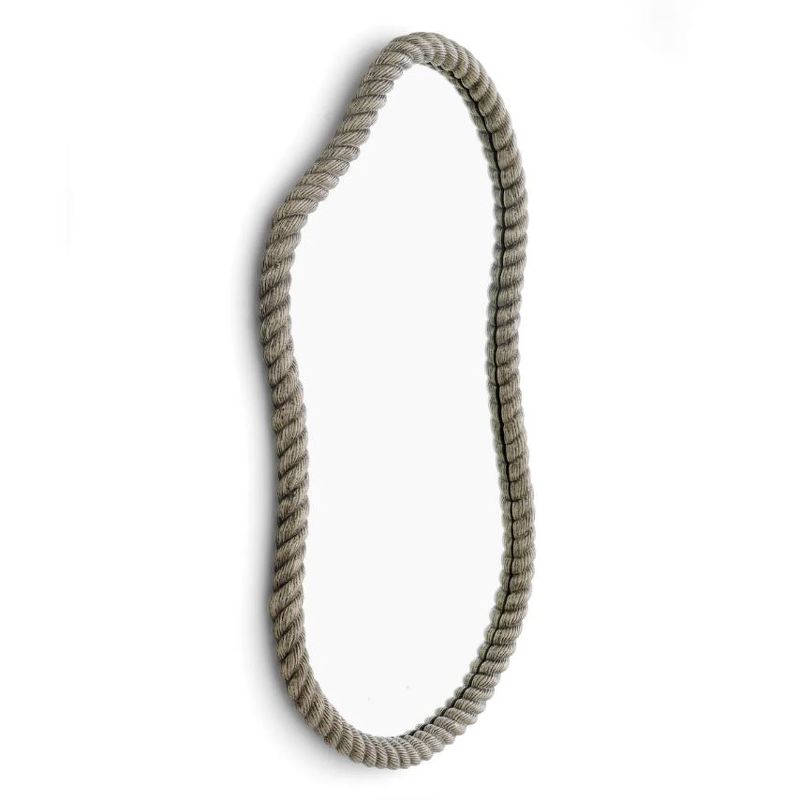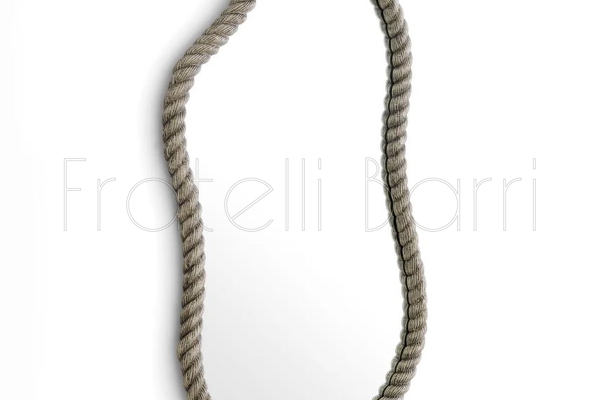 Рама зеркала создана вручную — каждый изгиб, каждый виток вылеплен с ювелирной точностью. Форма напоминает туго скрученный канат, застывший в своем пластичном движении. Текстура "веревки" придает поверхности невероятную тактильность и глубину, превращая обрамление в самостоятельный арт-объект.