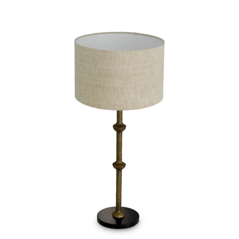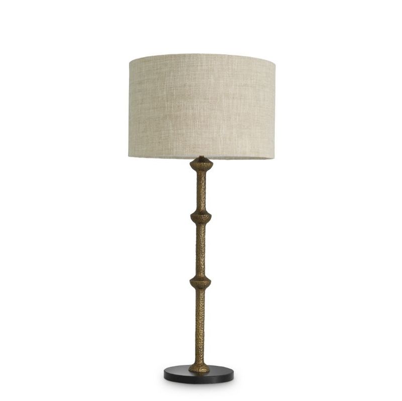 Основание лампы выполнено методом ручного литья из металла с покрытием под старую латунь. Изысканный декор и филигранная проработка деталей подчеркивают аутентичность и благородство модели. Нежный абажур из высококачественного текстиля создает мягкий, рассеянный свет и легко комбинируется с другими фактурами и оттенками в интерьере.