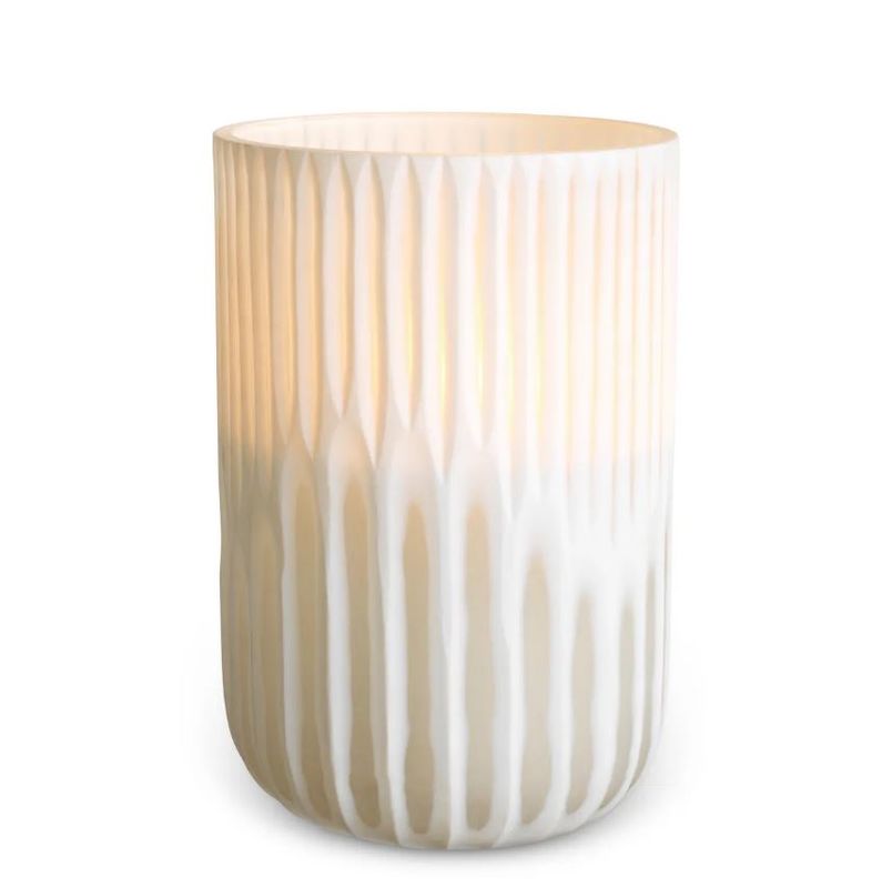 Воплощение эстетики — Westgrove от Eichholtz. Этот аксессуар создан для тех, кто ценит красоту ручного труда. Благородное стекло нежного молочного оттенка покрыто изящным резным узором, выполненным вручную. Эта деталь превращает простой подсвечник в самостоятельный арт-объект.
