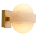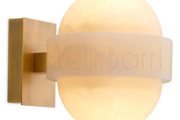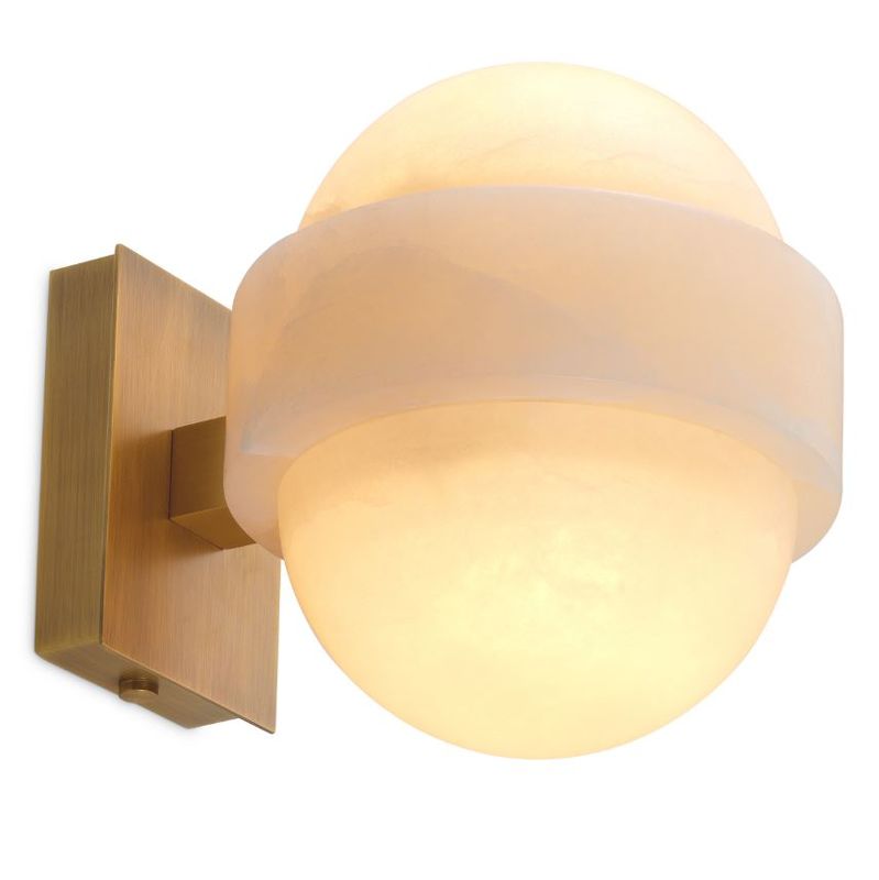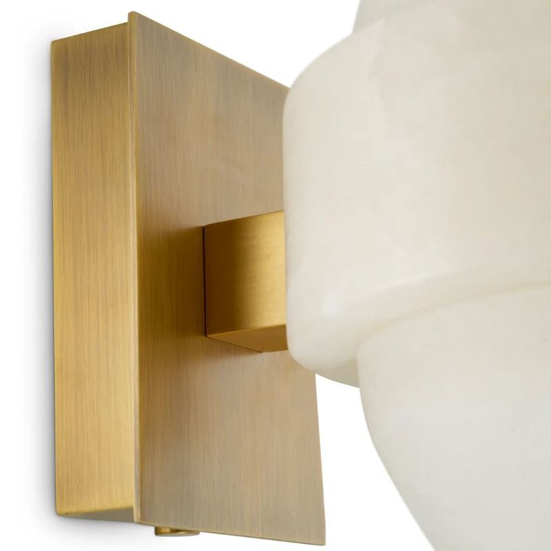 Основание бра выполнено в отделке состаренная латунь и дополнено алебастром. Алебастр — это природный материал, каждый кусок отличается по цвету, прозрачности и прожилкам, то есть, изделие из него абсолютно уникальное.
