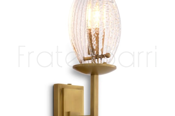 У модели Persephone — красивый и чёткий геометричный дизайн. Одно латунное «плечо» держит длинный ребристый стеклянный плафону. Рифлёное стекло мягко рассеивает свет и приятно мерцает. Золотистое покрытие добавляет тепла и благородства.