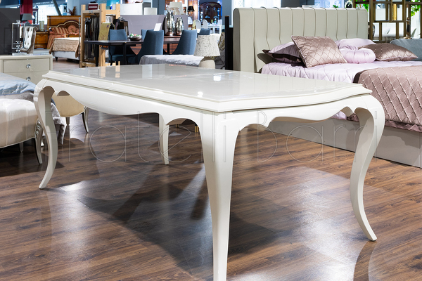 Обеденный стол раздвижной, отделка бежевый блестящий лак
