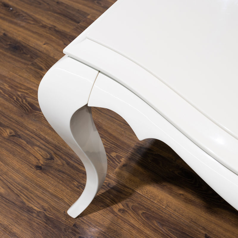 Обеденный стол раздвижной, отделка белый блестящий лак
