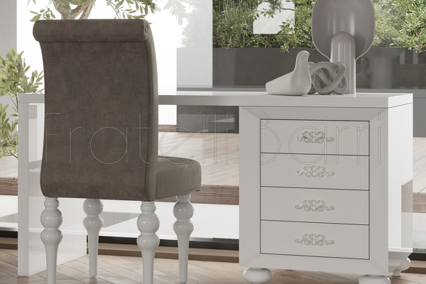Туалетный столик, отделка белый блестящий лак, декор хром